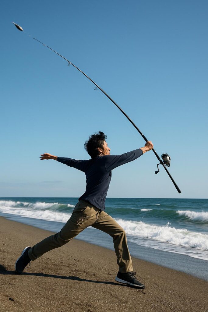 伸ばすための核は、タメと体重移動の同期です。構えでオモリを適切位置に置き、タラシ長を状況と力量に合わせて調整し、スイングの始動はリラックス、最大加速は終盤で一気に行います。打ち出し角はおおよそ45度を意識し、胸を張って視線も同角に保つと弾道が安定します。指離しは人差し指の第一関節よりわずか上にラインを掛けると抜けが均一になり、左右への着水ズレはラインを指に掛ける位置を1mm単位で微調整する方法が有効です。投擲前の安全確認(進路、波、オモリ離陸点の障害物)を徹底すると、躊躇のない振り抜きにつながります。